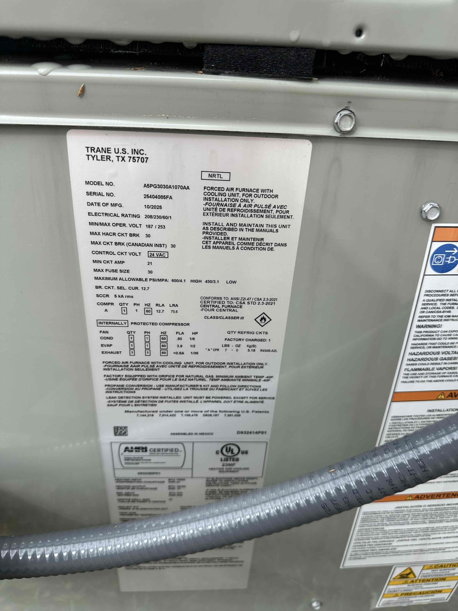 Arrived 8-21-25 for promotional first responder tune-up. Checked system in cooling. Checked filter condition. Checked electrical connections and components. Checked blower condition and amperage. Flushed / vacuumed drain line. Checked condition of coils - cleaned outdoor condenser coil with water only. Checked condition of lineset. Checked condition of ductwork. Checked amperage of compressor and condenser fan. Checked refrigerant pressures. Checked indoor humidity level. Checked temperature split. ————— Found 1990 R22 3-piece 2.5ton system. Found condenser had been struck by a vehicle and is now suffering from restricted pressures, along with causing both the compressor and condenser fan motor to overamp. Found heat exchangers (chambers) rusted internally, and rattling. Found every time system was touched, it appeared that something had collapsed internally. Found single-wall being used for flue pipe. Found found evaporator coil freezing up on u-bends, and rusting. Found b